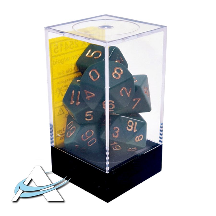 Dadi Chessex - Set 7 Dadi - Opaco, Verde Polveroso/Oro