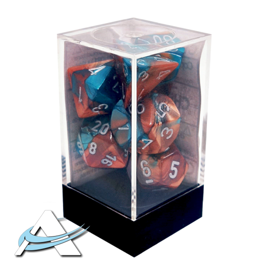 Dadi Chessex - Set 7 Dadi - Gemini, Rame-Verde Acqua/Argento