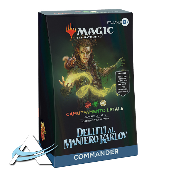 - CONTENTS. 1 ready-to-play Deadly Disguise Murders at Karlov Manor Commander Deck, a 2-card Collector Booster Sample Pack, 1 Foil-Etched Display Commander, 10 double-sided tokens, 1 life tracker, and 1 deck box