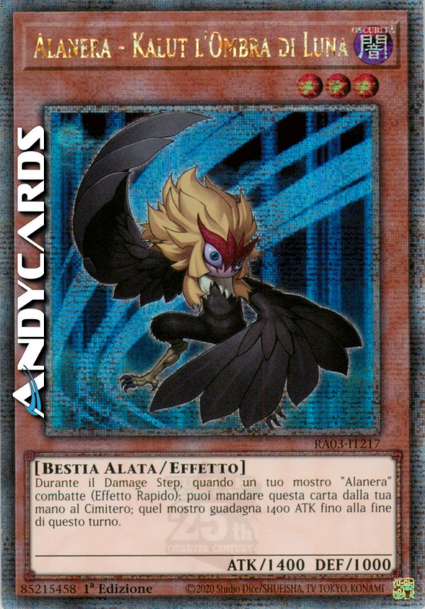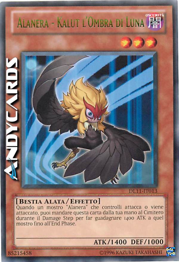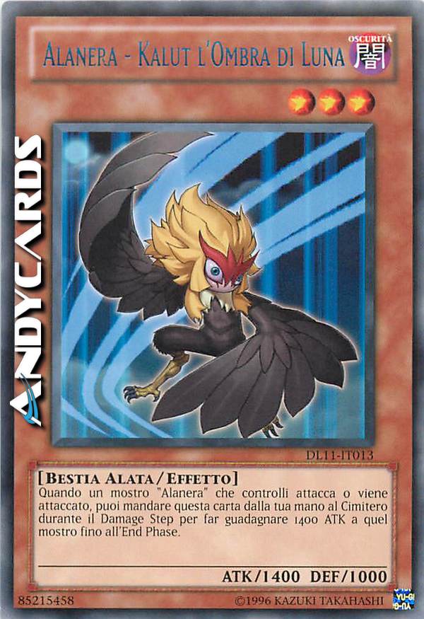 Quando un mostro "Alanera" che controlli attacca o viene attaccato, puoi mandare questa carta dalla tua mano al Cimitero durante il Damage Step per far guadagnare 1400 ATK a quel mostro fino all'End Phase.