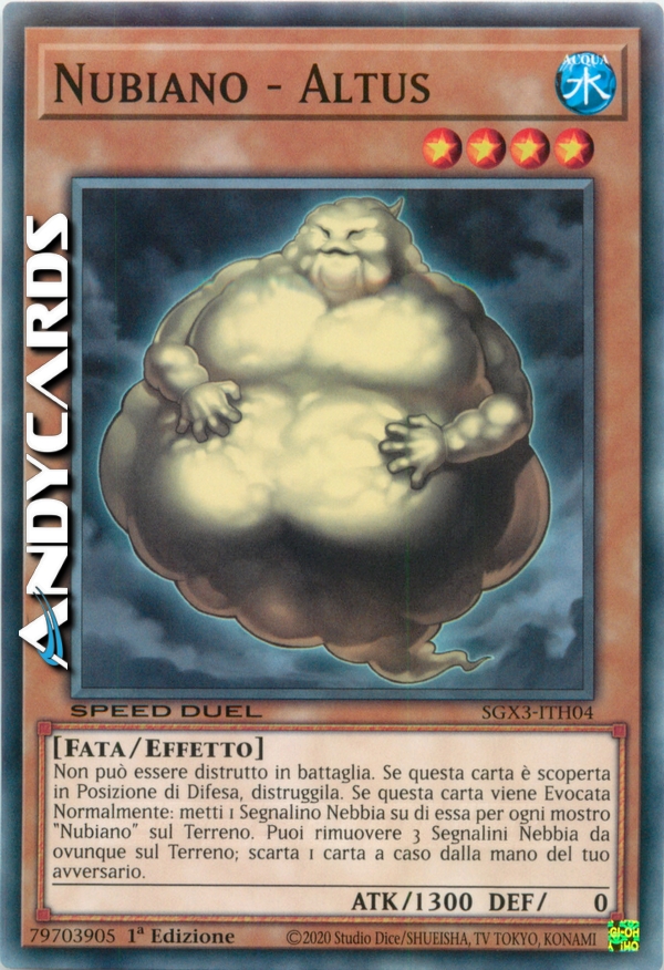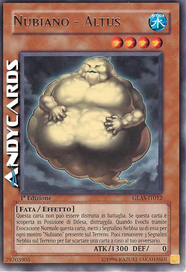 Non può essere distrutto in battaglia. Se questa carta è scoperta in Posizione di Difesa, distruggila. Se questa carta viene Evocata Normalmente: metti 1 Segnalino Nebbia su di essa per ogni mostro "Nubiano" sul Terreno. Puoi rimuovere 3 Segnalini Nebbia da ovunque sul Terreno; scarta 1 carta a caso dalla mano del tuo avversario.