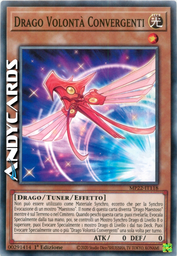 Non può essere utilizzato come Materiale Synchro, eccetto che per la Synchro Evocazione di un mostro "Maestoso". Il nome di questa carta diventa "Drago Maestoso" mentre è sul Terreno o nel Cimitero. Quando peschi questa carta: puoi rivelarla; Evocala Specialmente dalla tua mano, poi, se controlli un Mostro Synchro Drago di Livello 8 o superiore, puoi Evocare Specialmente 1 mostro Drago di Livello 1 dal tuo Deck. Puoi Evocare Specialmente uno o più "Drago Volontà Convergenti" una sola volta per turno.