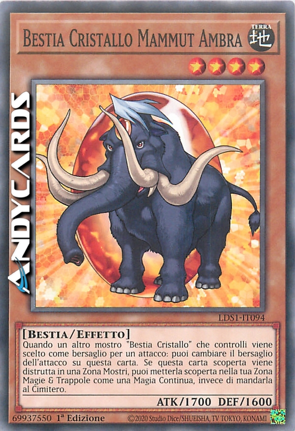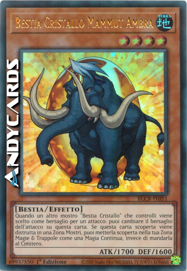 Quando un altro mostro "Bestia Cristallo" scoperto che controlli viene scelto come bersaglio per un attacco: puoi invece rendere questa carta il bersaglio dell'attacco. Se questa carta scoperta viene distrutta mentre si trova in una Zona Carte Mostro, puoi metterla scoperta nella tua Zona Carte Magia & Trappola come una Carta Magia Continua, invece di mandarla al Cimitero.