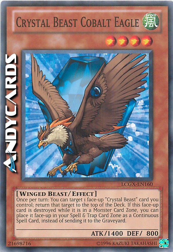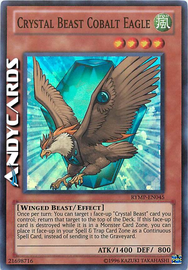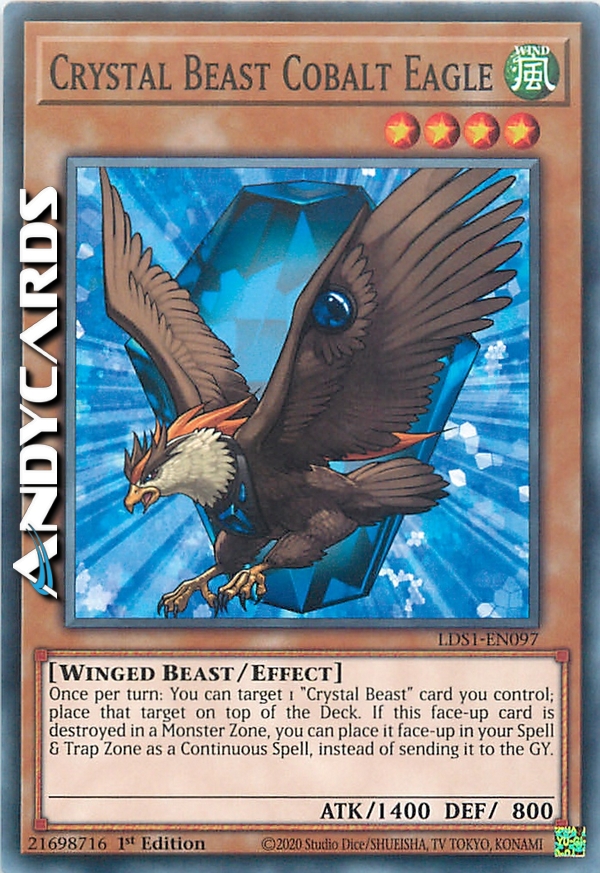 Once per turn: You can target 1 "Crystal Beast" card you control; place that target on top of the Deck. If this face-up card is destroyed in a Monster Zone, you can place it face-up in your Spell & Trap Zone as a Continuous Spell, instead of sending it to the GY.