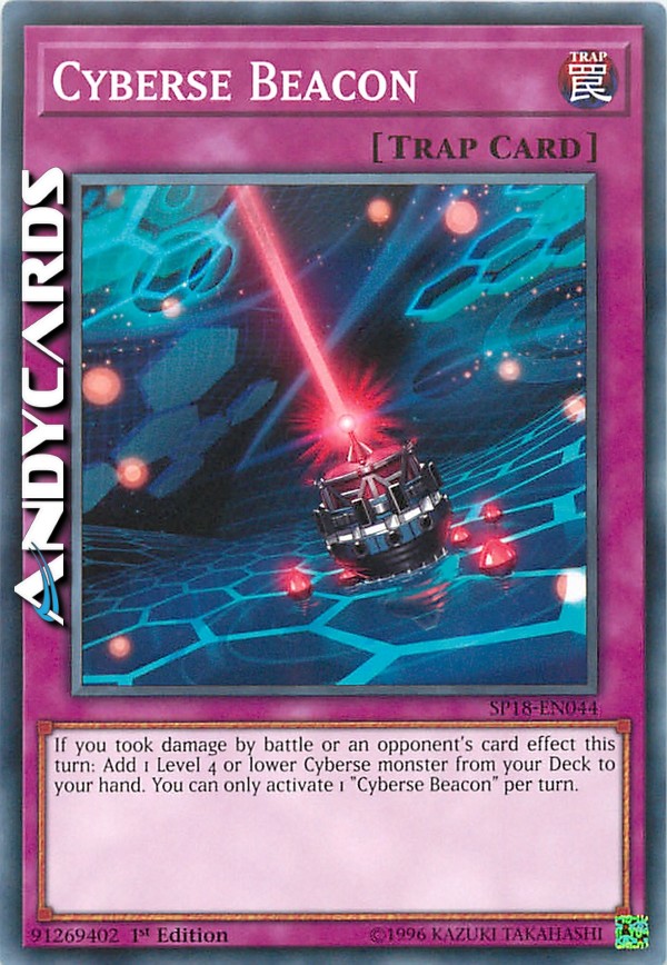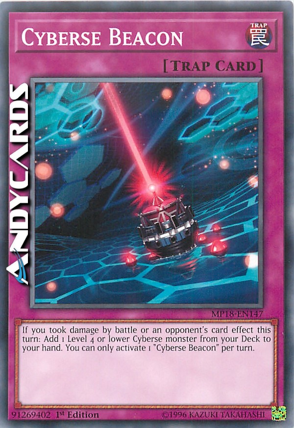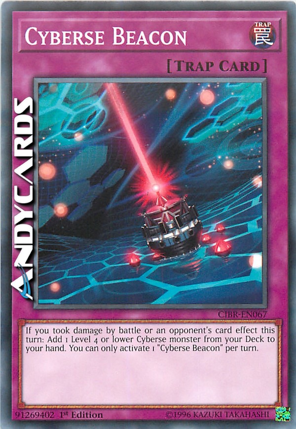 If you took damage by battle or an opponent's card effect this turn: Add 1 Level 4 or lower Cyberse monster from your Deck to your hand. You can only activate 1 "Cyberse Beacon" per turn.