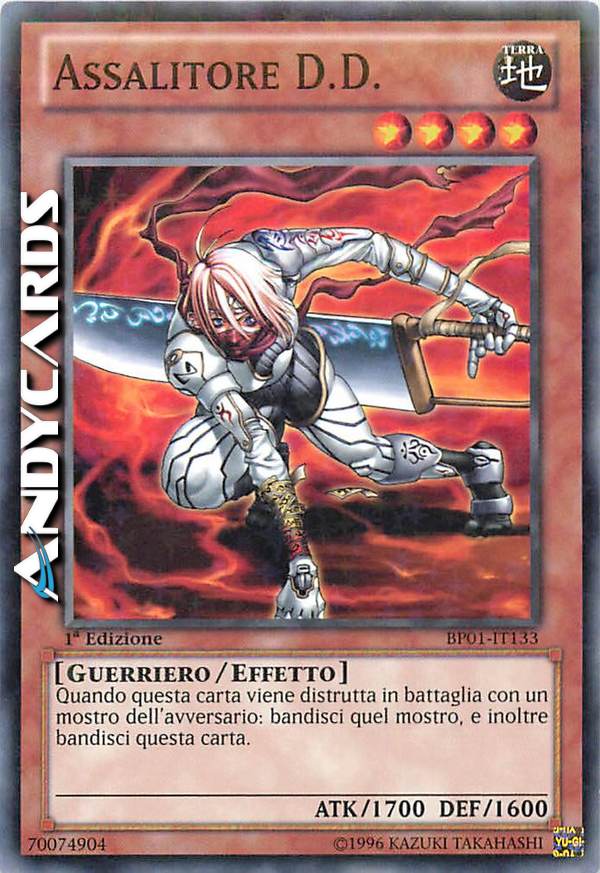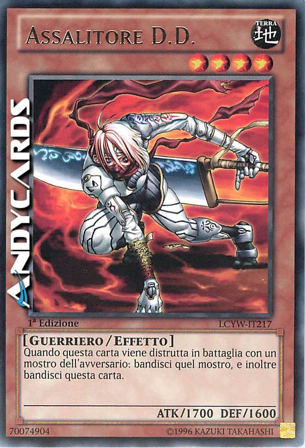 Dopo il calcolo dei danni, quando questa carta viene distrutta in battaglia con un mostro dell'avversario: bandisci quel mostro, e inoltre bandisci questa carta.