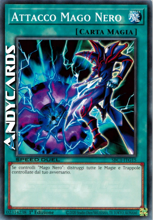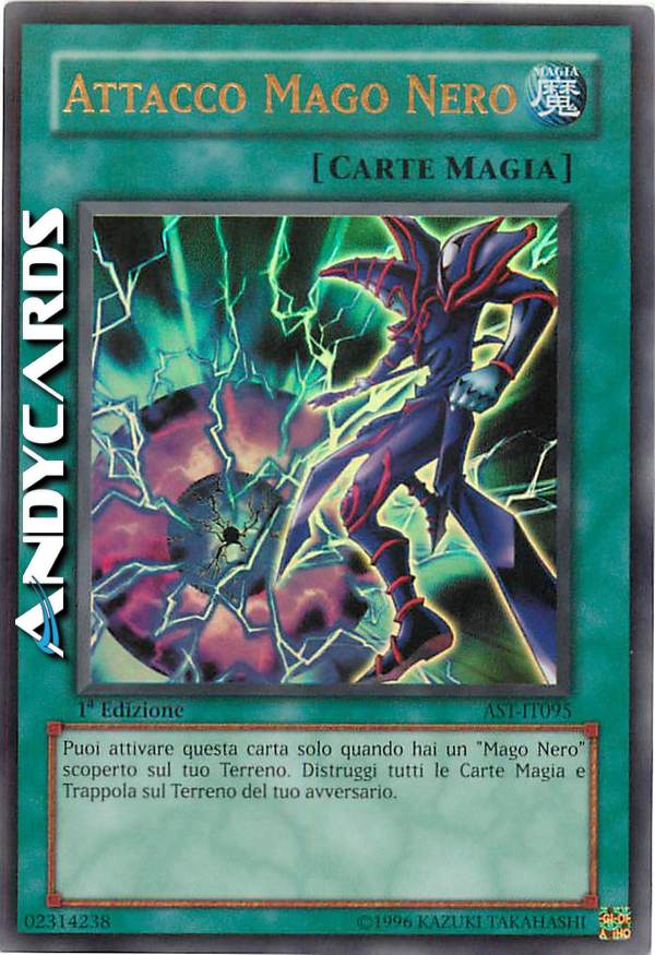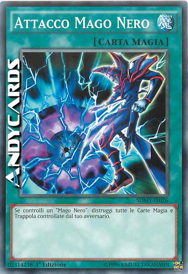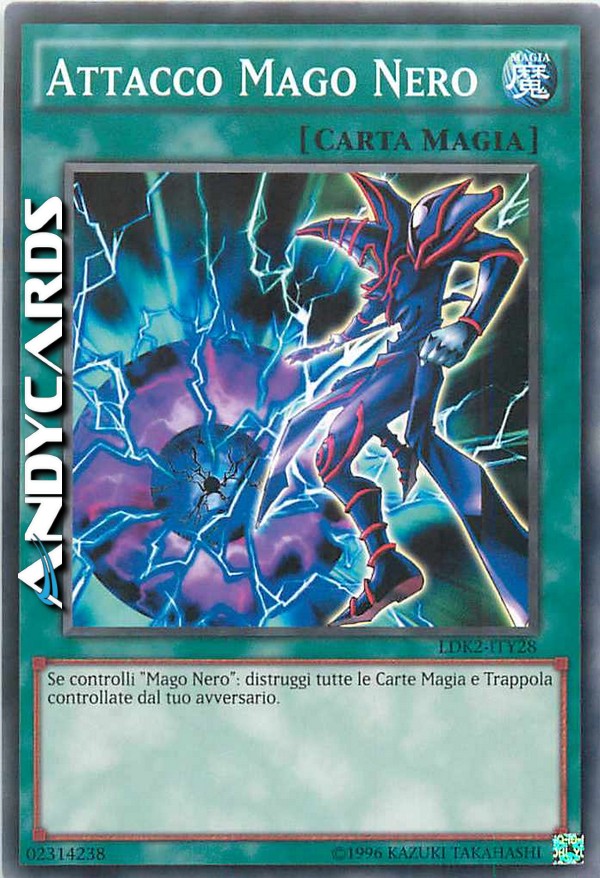 Puoi attivare questa carta solo quando hai un "Mago Nero" scoperto sul tuo Terreno. Distruggi tutte le Carte Magia e Trappola sul Terreno del tuo avversario.