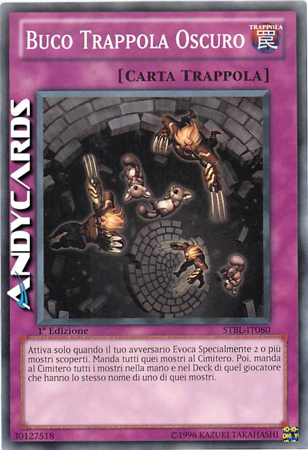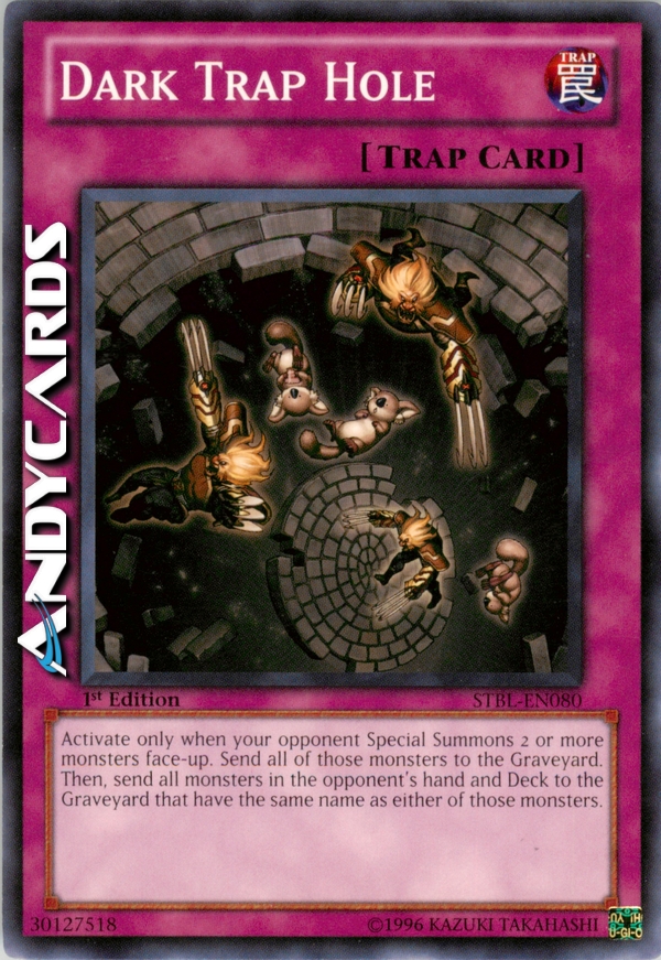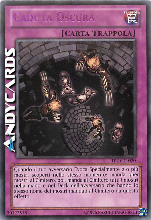 Quando il tuo avversario Evoca Specialmente 2 o più mostri scoperti nello stesso momento: manda quei mostri al Cimitero, poi, manda al Cimitero tutti i mostri nella mano e nel Deck dell'avversario che hanno lo stesso nome dei mostri mandati al Cimitero da questo effetto.