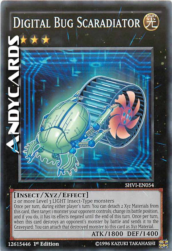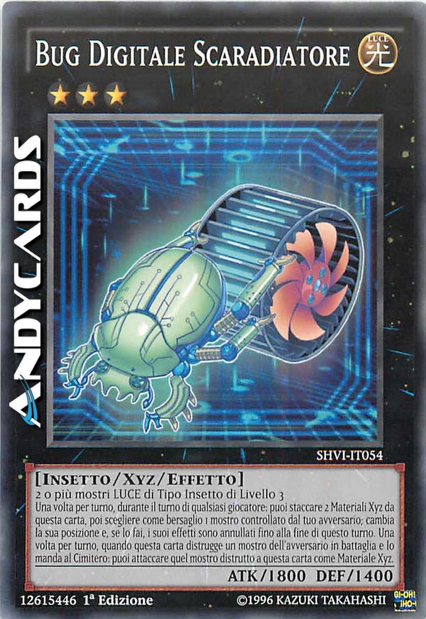 2 o più mostri LUCE di Tipo Insetto di Livello 3 - Una volta per turno, durante il turno di qualsiasi giocatore: puoi staccare 2 Materiali Xyz da questa carta, poi scegliere come bersaglio 1 mostro controllato dal tuo avversario; cambia la sua posizione e, se lo fai, i suoi effetti sono annullati fino alla fine di questo turno. Una volta per turno, quando questa carta distrugge un mostro dell'avversario in battaglia e lo manda al Cimitero: puoi attaccare quel mostro distrutto a questa carta come Materiale Xyz.