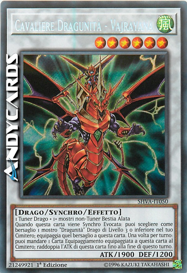 1 Tuner di Tipo Drago + 1 o più mostri non-Tuner di Tipo Bestia Alata Quando questa carta viene Synchro Evocata, puoi scegliere 1 mostro "Dragunità" di Tipo Drago di Livello 3 o inferiore nel tuo Cimitero ed equipaggiarlo a questa carta come una Carta Equipaggiamento. Una volta per turno, puoi mandare 1 Carta Equipaggiamento equipaggiata a questa carta al Cimitero per raddoppiare l'ATK di questa carta fino alla End Phase.