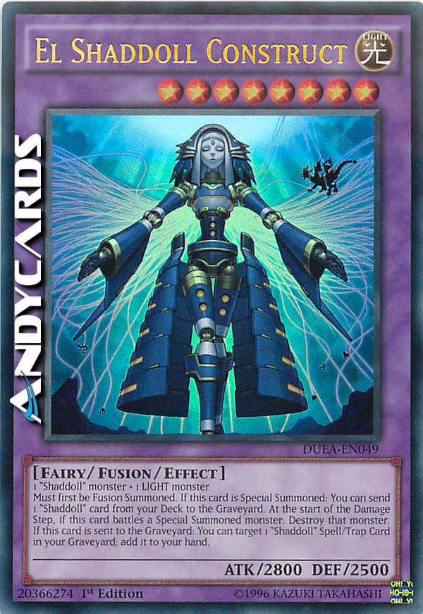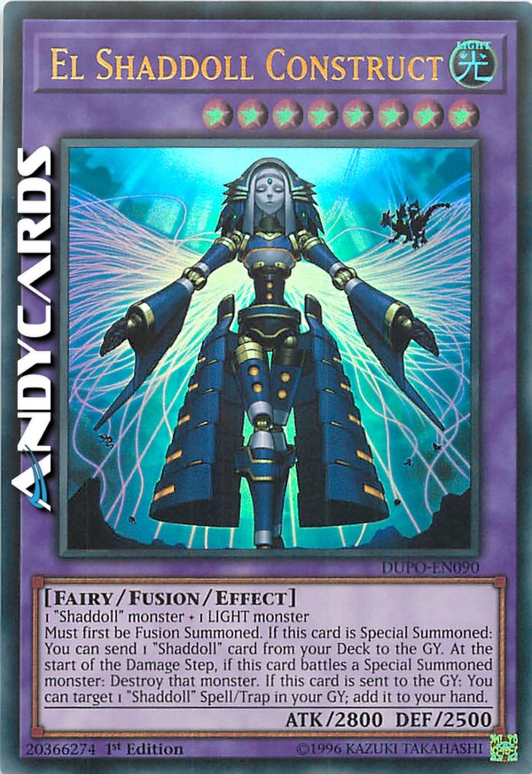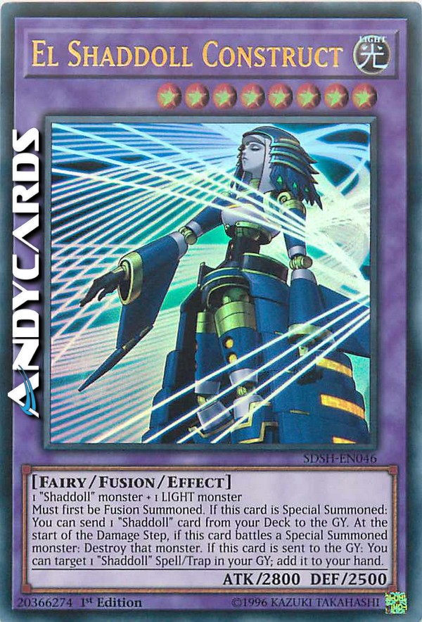 Must first be Fusion Summoned. If this card is Special Summoned: You can send 1 "Shaddoll" card from your Deck to the GY. At the start of the Damage Step, if this card battles a Special Summoned monster: Destroy that monster. If this card is sent to the GY: You can target 1 "Shaddoll" Spell/Trap in your GY; add it to your hand.