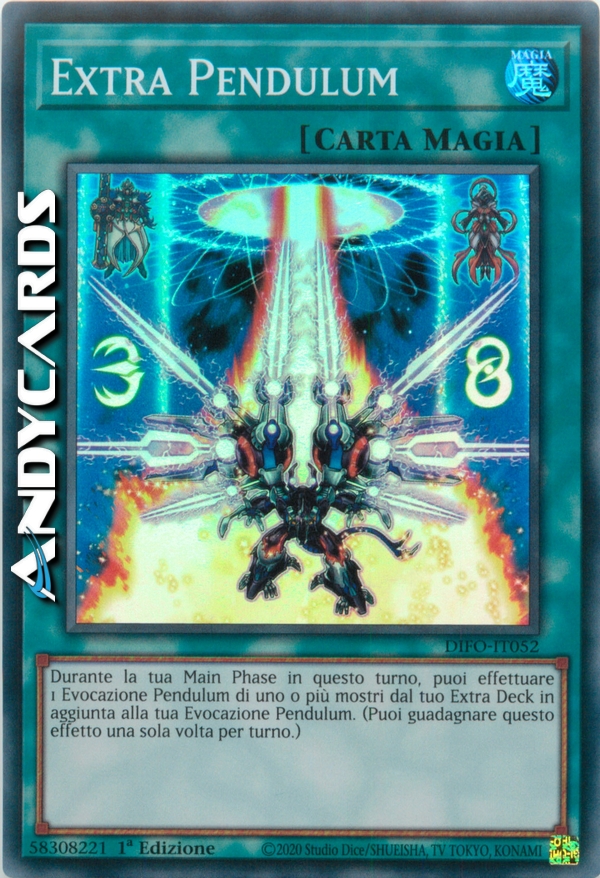 Durante la tua Main Phase in questo turno, puoi effettuare 1 Evocazione Pendulum di uno o più mostri dal tuo Extra Deck in aggiunta alla tua Evocazione Pendulum. (Puoi guadagnare questo effetto una sola volta per turno.)