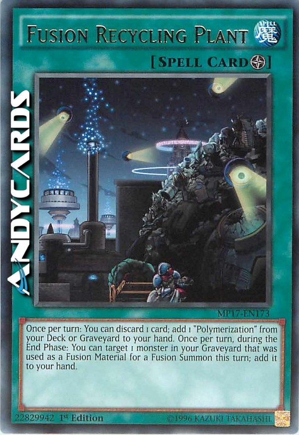 Once per turn: You can discard 1 card; add 1 "Polymerization" from your Deck or GY to your hand. Once per turn, during the End Phase: You can target 1 monster in your GY that was used as a Fusion Material for a Fusion Summon this turn; add it to your hand.