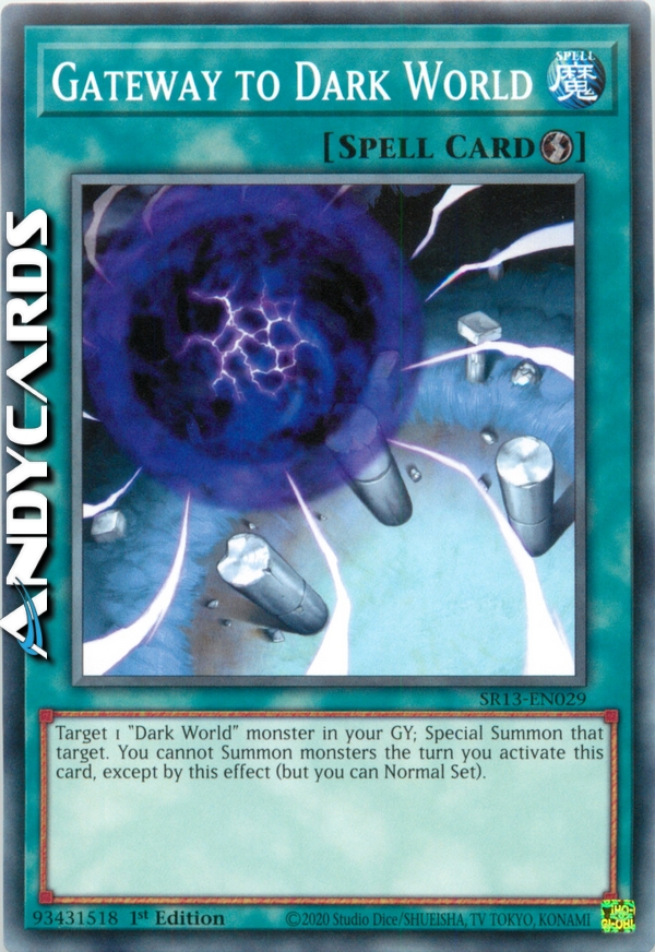 Scegli come bersaglio 1 mostro "Mondo Oscuro" nel tuo Cimitero; Evoca Specialmente quel bersaglio. Non puoi Evocare altri mostri nel turno in cui attivi questa carta.
