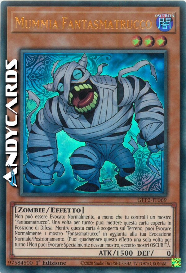 Non può essere Evocato Normalmente, a meno che tu controlli un mostro "Fantasmatrucco". Una volta per turno: puoi mettere questa carta coperta in Posizione di Difesa. Mentre questa carta è scoperta sul Terreno, puoi Evocare Normalmente 1 mostro "Fantasmatrucco" in aggiunta alla tua Evocazione Normale/Posizionamento. (Puoi guadagnare questo effetto una sola volta per turno.) Non puoi Evocare Specialmente nessun mostro, eccetto mostri OSCURITÀ.