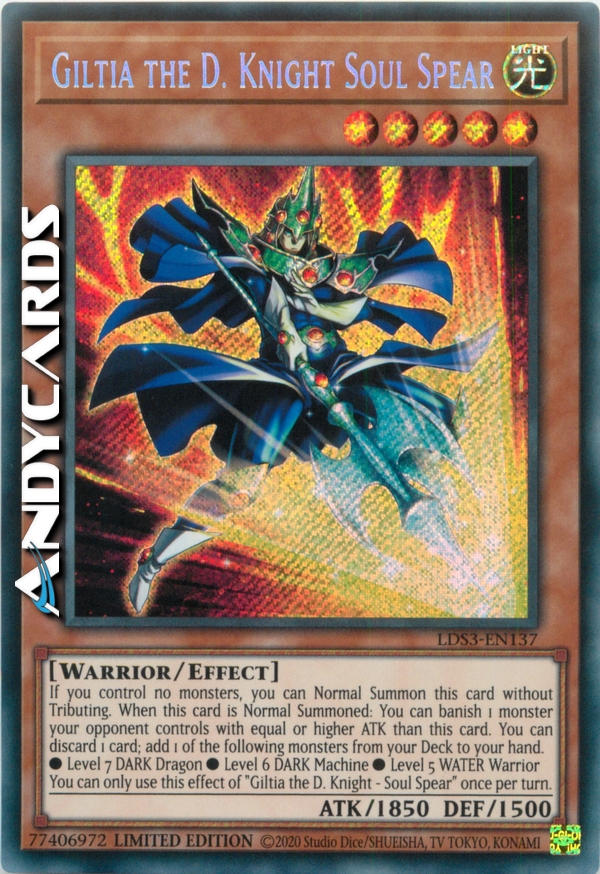 Puoi utilizzare questo effetto di "Giltia il Cavaliere dei D. - Lancia dell'Anima" una sola volta per turno.