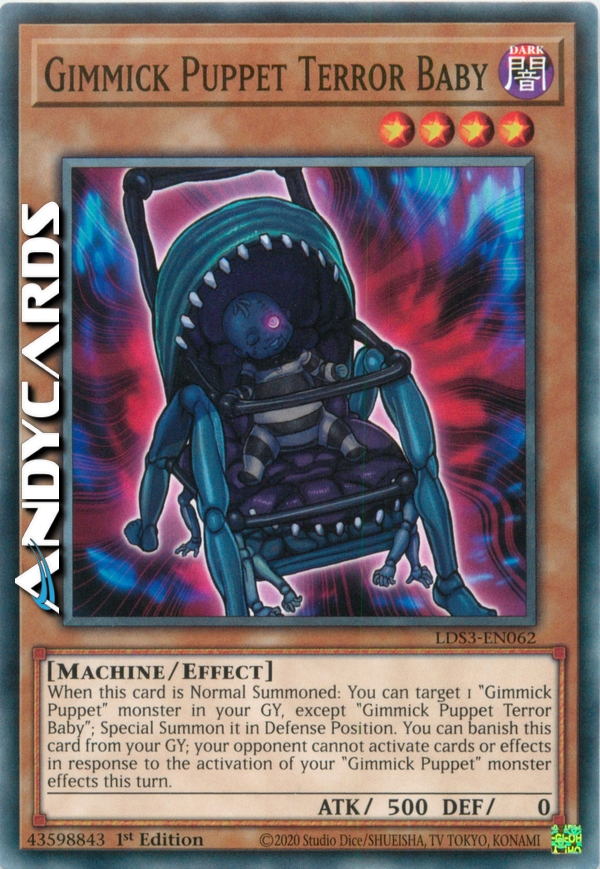 When this card is Normal Summoned: You can target 1 "Gimmick Puppet" monster in your GY, except "Gimmick Puppet Terror Baby"; Special Summon it in Defense Position. You can banish this card from your GY; your opponent cannot activate cards or effects in response to the activation of your "Gimmick Puppet" monster effects this turn.