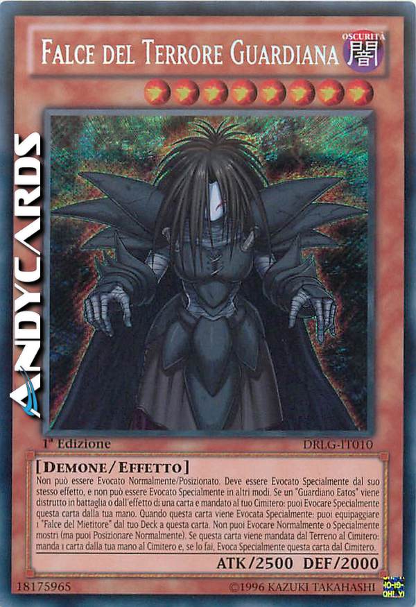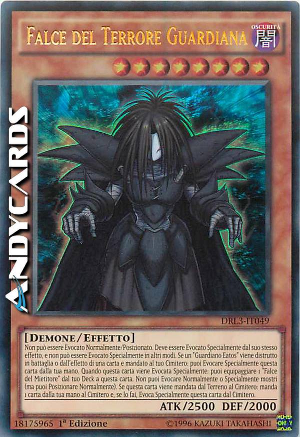Non può essere Evocato Normalmente o Posizionato. Deve essere evocato specialmente dal suo stesso effetto, e non può essere evocato in altri modi. Se un "Guardiano Eatos" viene distrutto in battaglia o dall'effetto di una carta e mandato al tuo Cimitero: puoi Evocare Specialmente questa carta dalla tua mano. Quando questa carta viene Evocata Specialmente: puoi equipaggiare 1 "Falce del Mietitore" dal tuo Deck a questa carta. Non puoi Evocare Normalmente o Specialmente mostri (ma puoi Posizionare Normalmente. Se questa carta viene mandata dal Terreno al Cimitero: manda 1 carta dalla tua mano al Cimitero e, se lo fai, Evoca specialmente questa carta dal Cimitero.