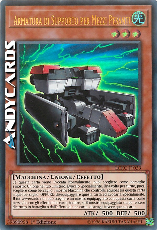 Se questa carta viene Evocata Normalmente: puoi scegliere come bersaglio 1 mostro Unione nel tuo Cimitero; Evocalo Specialmente. Una volta per turno, puoi: scegliere come bersaglio 1 mostro Macchina che controlli; equipaggia questa carta a quel bersaglio, OPPURE: disequipaggiare questa carta ed Evocarla Specialmente. Il tuo avversario non può scegliere un mostro equipaggiato con questa carta come bersaglio con gli effetti delle carte, inoltre, se il mostro equipaggiato sta per essere distrutto in battaglia o dall'effetto di una carta, distruggi invece questa carta.