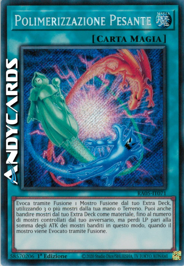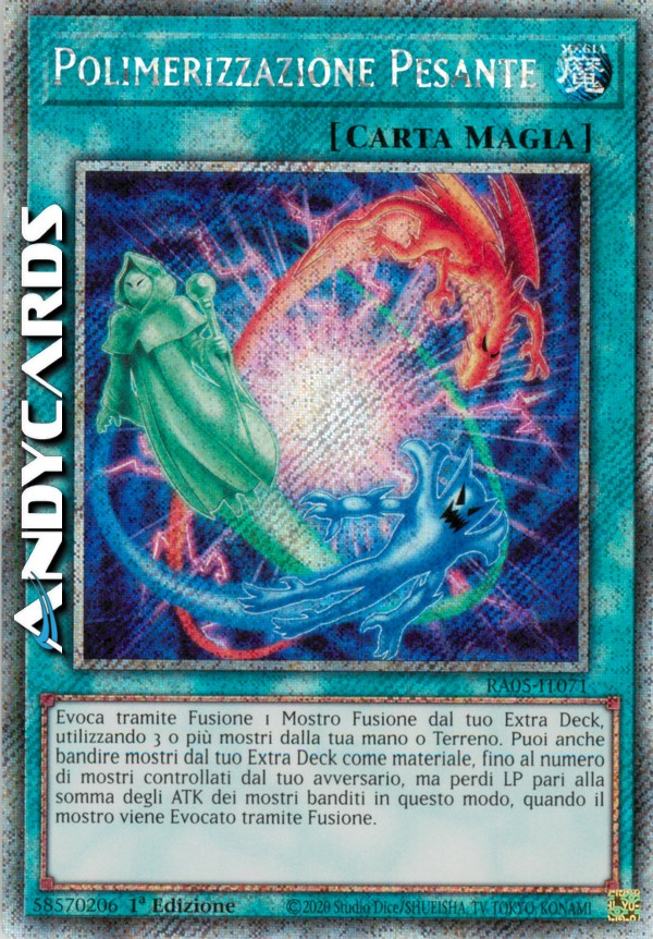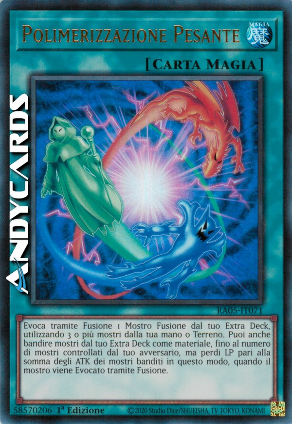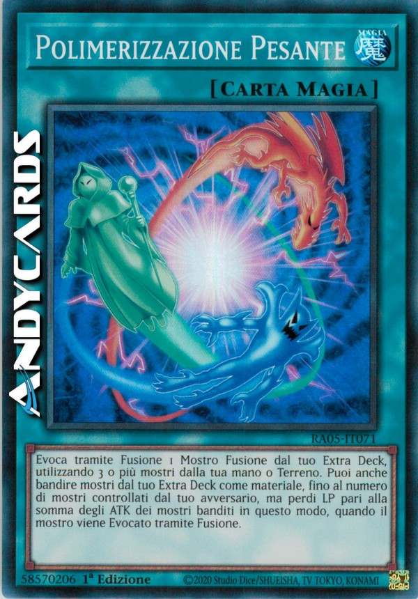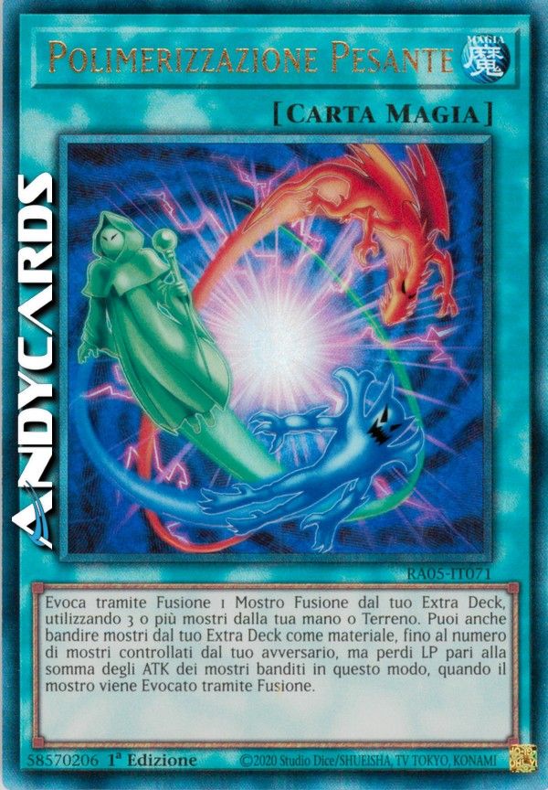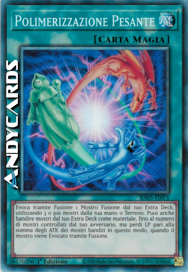 Evoca tramite Fusione 1 Mostro Fusione dal tuo Extra Deck, utilizzando 3 o più mostri dalla tua mano o Terreno come materiale. Puoi anche bandire mostri dal tuo Extra Deck come materiale, fino al numero di mostri controllati dal tuo avversario, ma perdi LP pari alla somma degli ATK dei mostri banditi in questo modo, quando il mostro viene Evocato tramite Fusione.