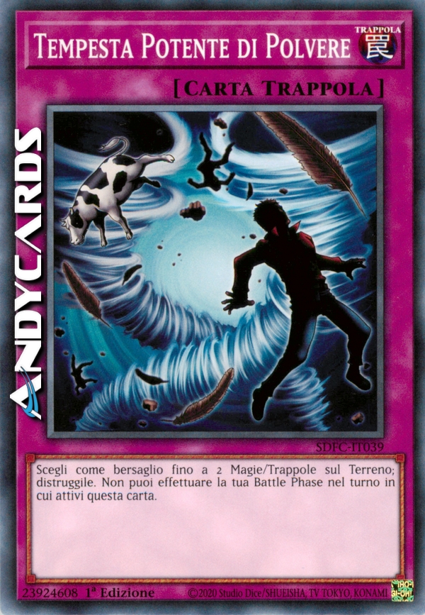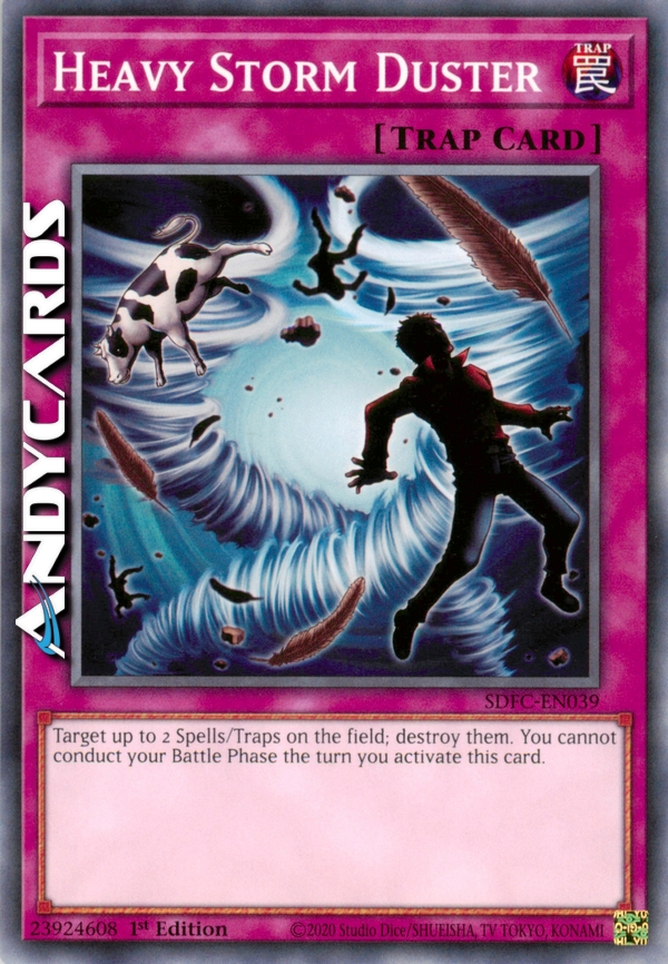 Scegli come bersaglio fino a 2 Magie/Trappole sul Terreno; distruggile. Non puoi effettuare la tua Battle Phase nel turno in cui attivi questa carta.