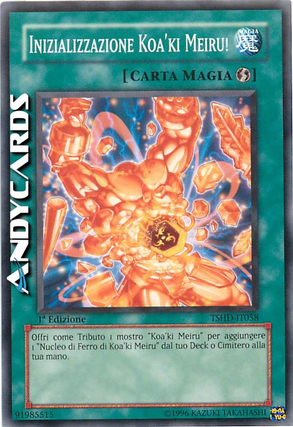 Offri come Tributo 1 mostro "Koa'ki Meiru" per aggiungere 1 "Nucleo di Ferro di Koa'ki Meiru" dal tuo Deck o Cimitero alla tua mano.