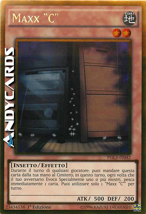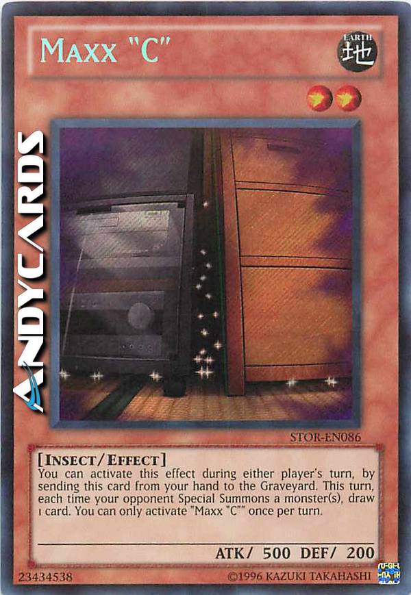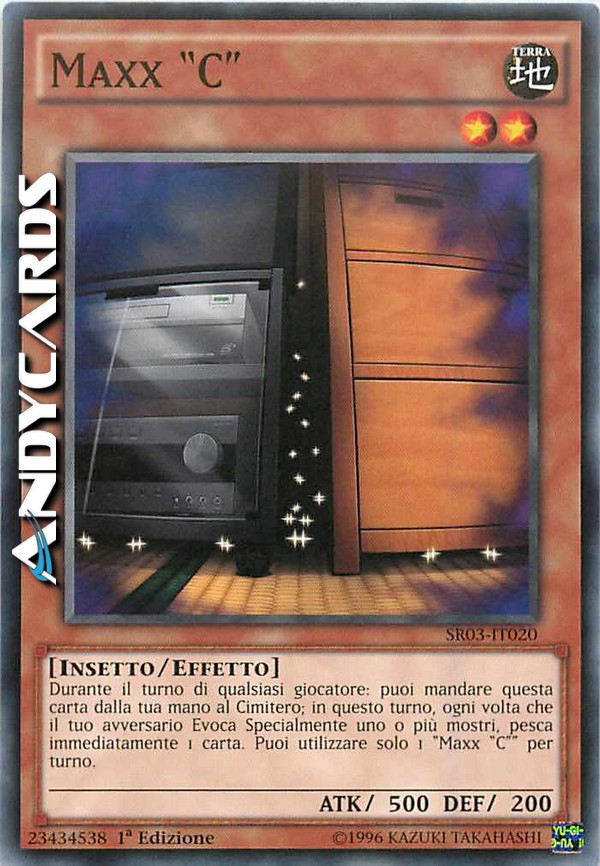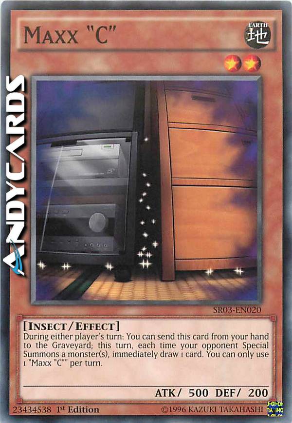 Durante il turno di qualsiasi giocatore: puoi mandare questa carta dalla tua mano al Cimitero; in questo turno, ogni volta che il tuo avversario Evoca Specialmente uno o più mostri, pesca immediatamente 1 carta. Puoi utilizzare solo 1 "Maxx "C"" per turno.