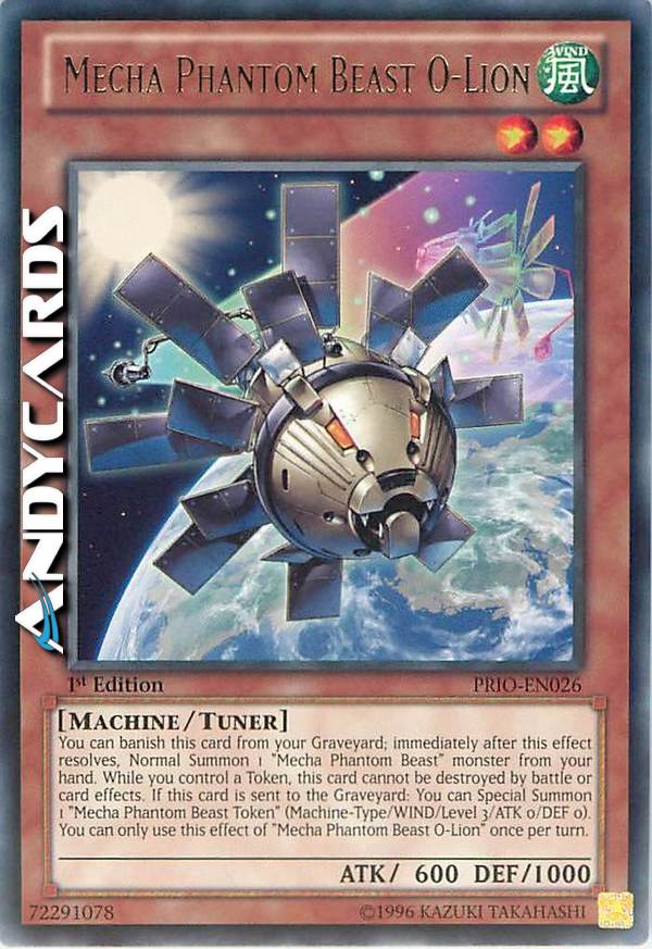 You can banish this card from your Graveyard; immediately after this effect resolves, Normal Summon 1 "Mecha Phantom Beast" monster from your hand. While you control a Token, this card cannot be destroyed by battle or card effects. If this card is sent to the Graveyard: You can Special Summon 1 "Mecha Phantom Beast Token" (Machine-Type/WIND/Level 3/ATK 0/DEF 0). You can only use this effect of "Mecha Phantom Beast O-Lion" once per turn.
