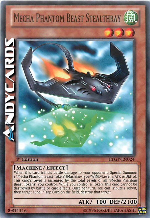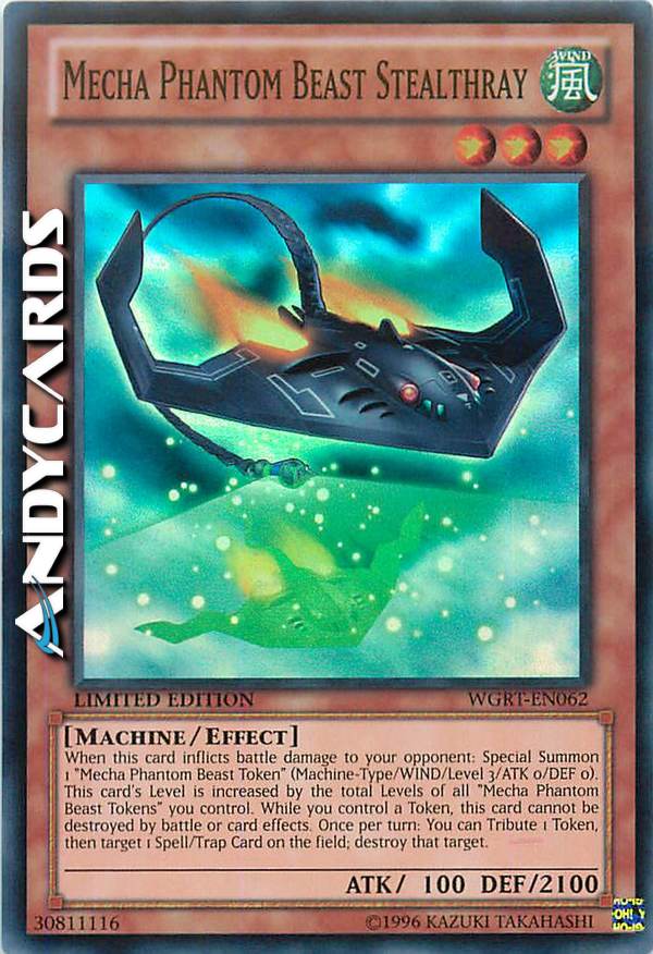 When this card inflicts battle damage to your opponent: Special Summon 1 "Mecha Phantom Beast Token" (Machine-Type/WIND/Level 3/ATK 0/DEF 0). This card's Level is increased by the total Levels of all "Mecha Phantom Beast Tokens" you control. While you control a Token, this card cannot be destroyed by battle or card effects. Once per turn: You can Tribute 1 Token, then target 1 Spell/Trap Card on the field; destroy that target.