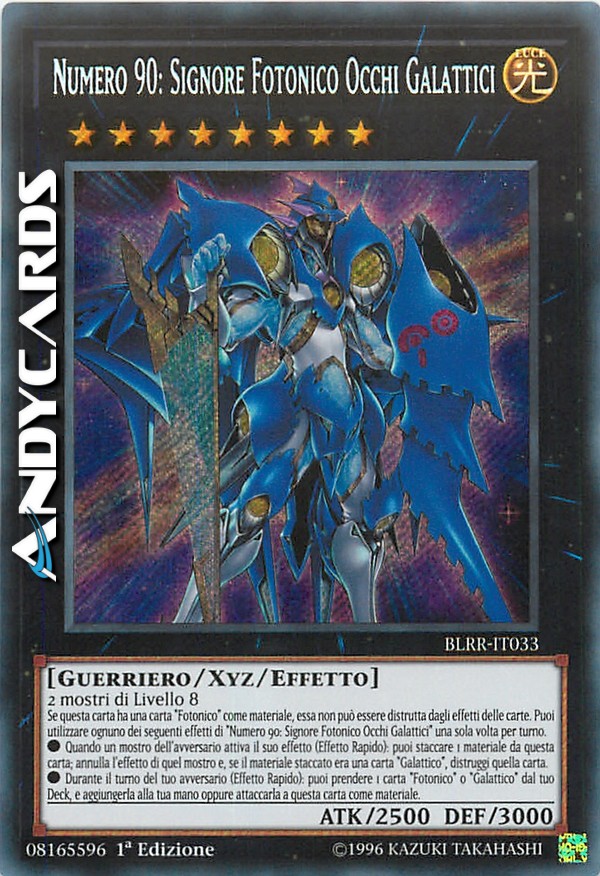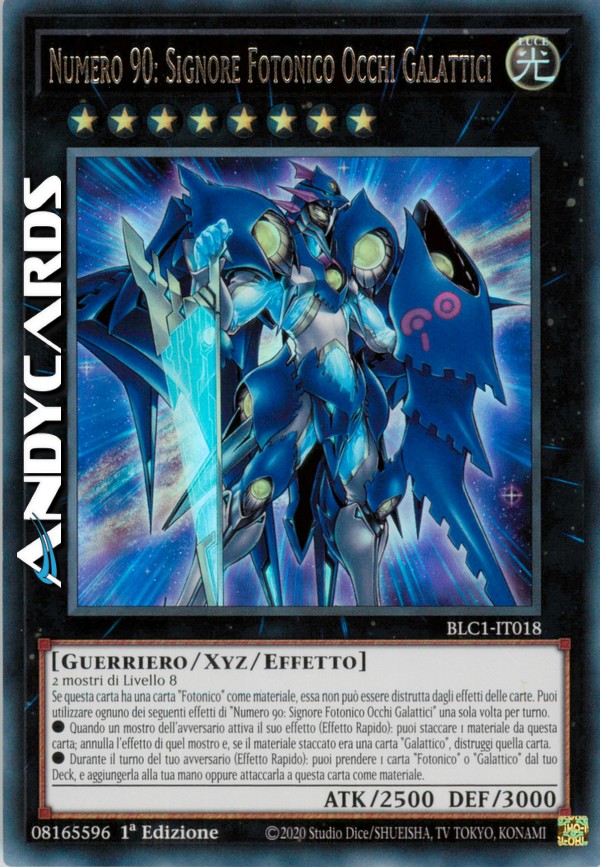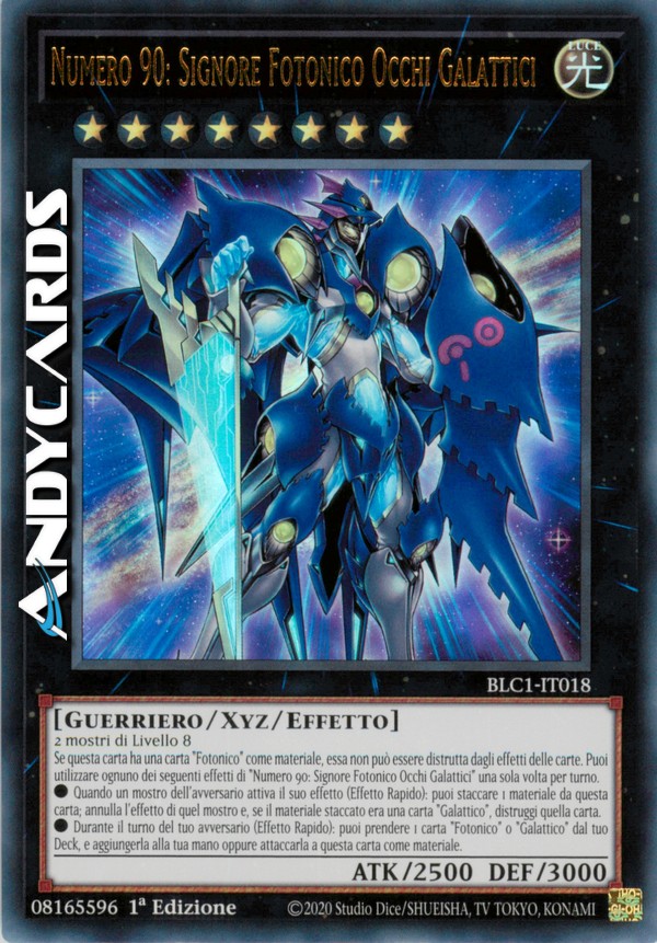 Se questa carta ha una carta "Fotonico" come materiale, essa non può essere distrutta dagli effetti delle carte. Puoi utilizzare ognuno dei seguenti effetti di "Numero 90: Signore Fotonico Occhi Galattici" una sola volta per turno.