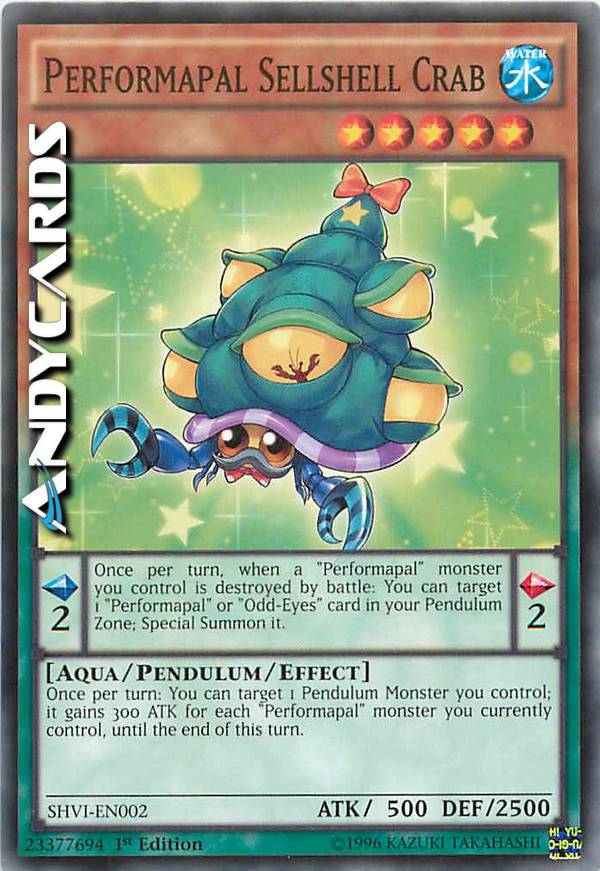 Once per turn: You can target 1 Pendulum Monster you control; it gains 300 ATK for each "Performapal" monster you currently control, until the end of this turn. - Once per turn, when a "Performapal" monster you control is destroyed by battle: You can target 1 "Performapal" or "Odd-Eyes" card in yourPendulum Zone; Special Summon it.
