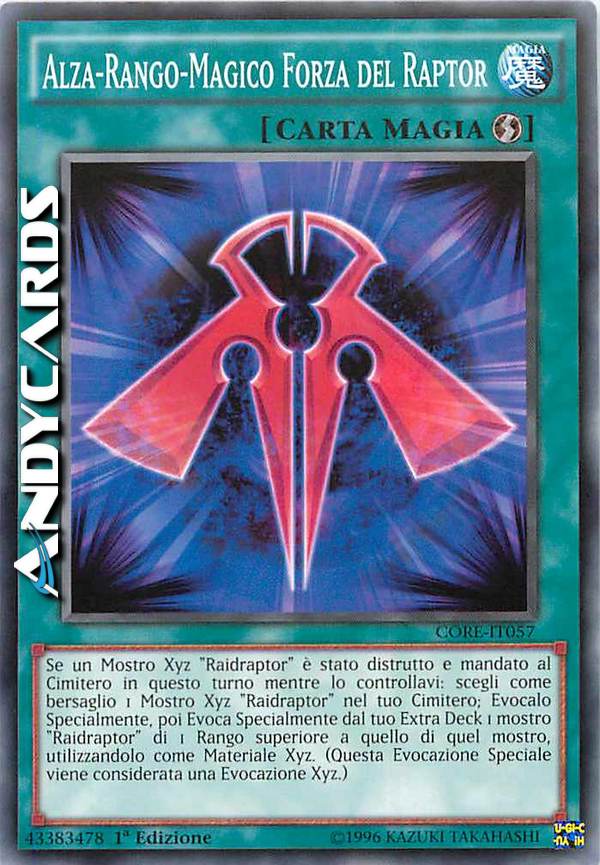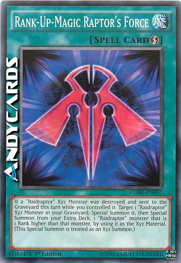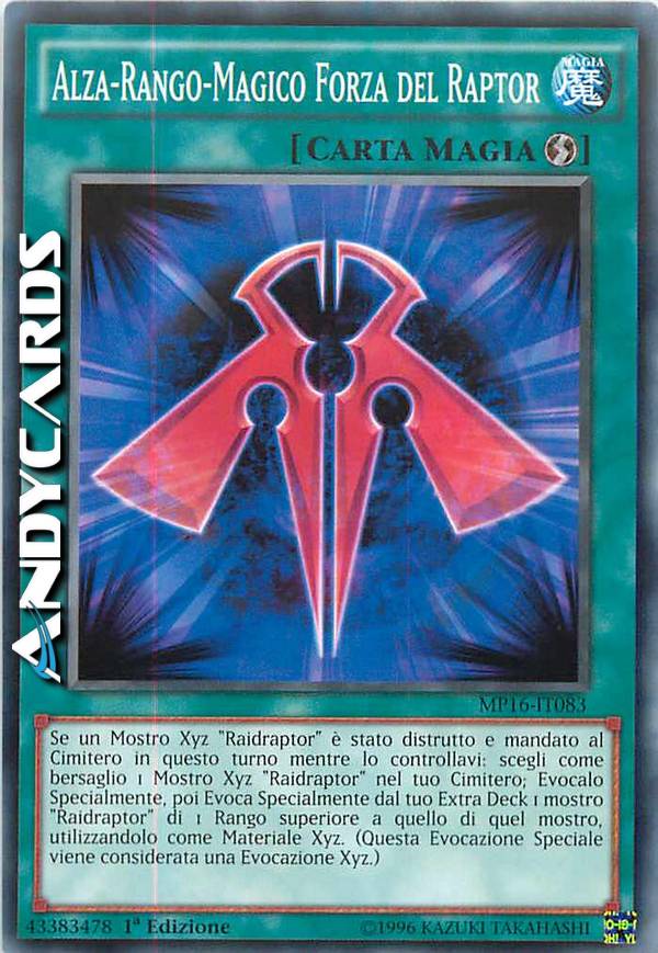 Se un Mostro Xyz "Raidraptor" è stato distrutto e mandato al Cimitero in questo turno mentre lo controllavi: scegli come bersaglio 1 Mostro Xyz "Raidraptor" nel tuo Cimitero; Evocalo Specialmente, poi Evoca Specialmente dal tuo Extra Deck 1 mostro "Raidraptor" di 1 Rango superiore a quello di quel mostro, utilizzandolo come Materiale Xyz. (Questa Evocazione Speciale viene considerata una Evocazione Xyz.)