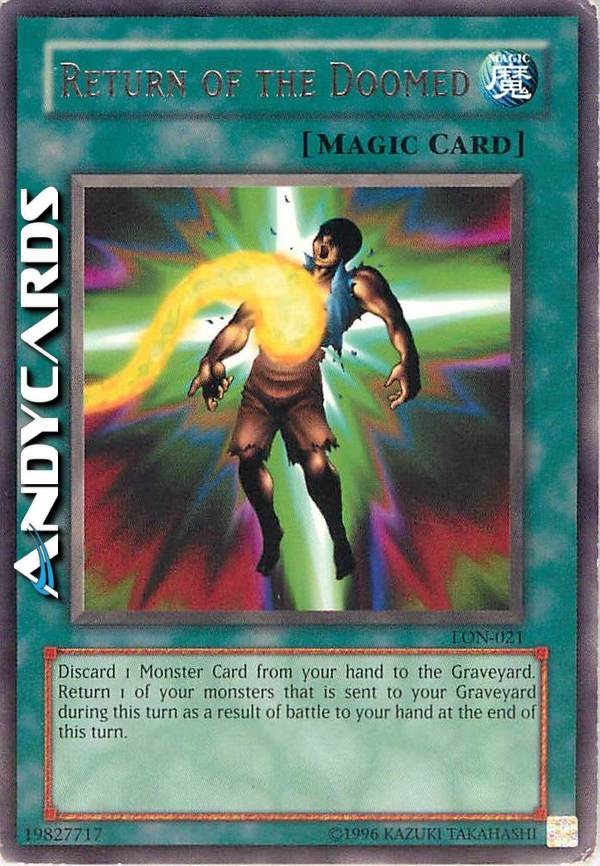 Scarta 1 Carta Mostro dalla tua mano al Cimitero. Alla fine di questo turno, fai ritornare nella tua mano 1 dei mostri mandato al tuo Cimitero in seguito ad una battaglia durante questo turno.