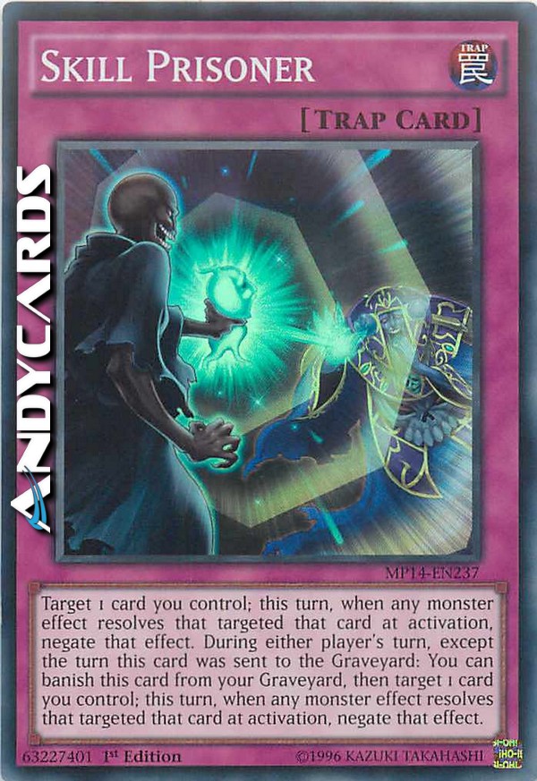 Scegli come bersaglio 1 carta che controlli; in questo turno, quando si risolve un qualsiasi effetto di mostro che ha scelto come bersaglio quella carta all'attivazione, annulla quell'effetto. Durante il turno di qualsiasi giocatore, eccetto il turno in cui questa carta è stata mandata al Cimitero: puoi bandire questa carta dal tuo Cimitero, poi scegliere come bersaglio 1 carta che controlli; in questo turno, quando si risolve un qualsiasi effetto di mostro che ha scelto come bersaglio quella carta all'attivazione, annulla quell'effetto.