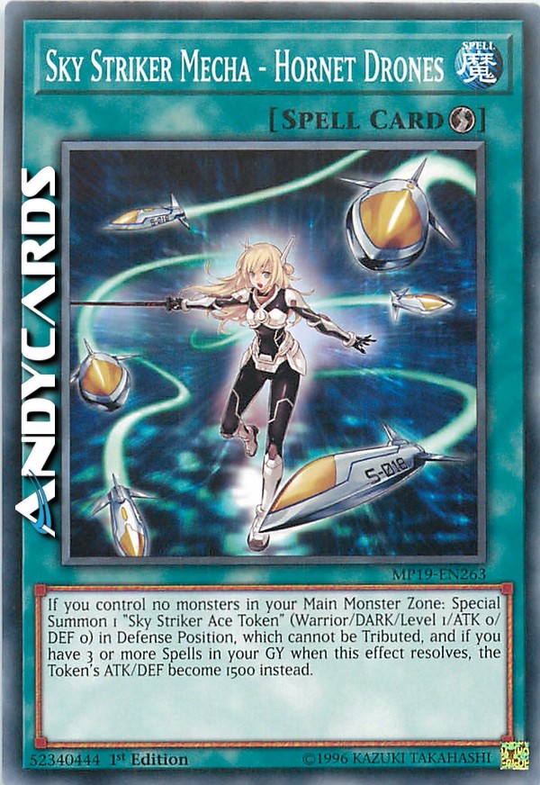 If you control no monsters in your Main Monster Zones: Special Summon 1 "Sky Striker Ace Token" (Warrior/DARK/Level 1/ATK 0/DEF 0) in Defense Position, which cannot be Tributed, and if you have 3 or more Spells in your GY when this effect resolves, the Token's ATK/DEF become 1500 instead.
