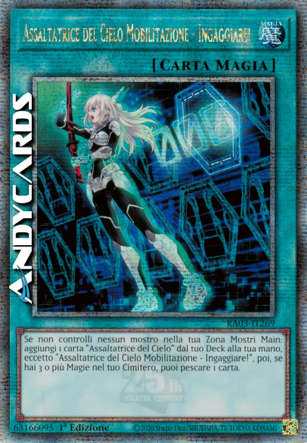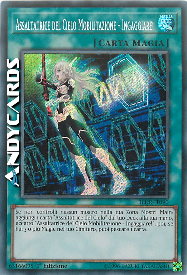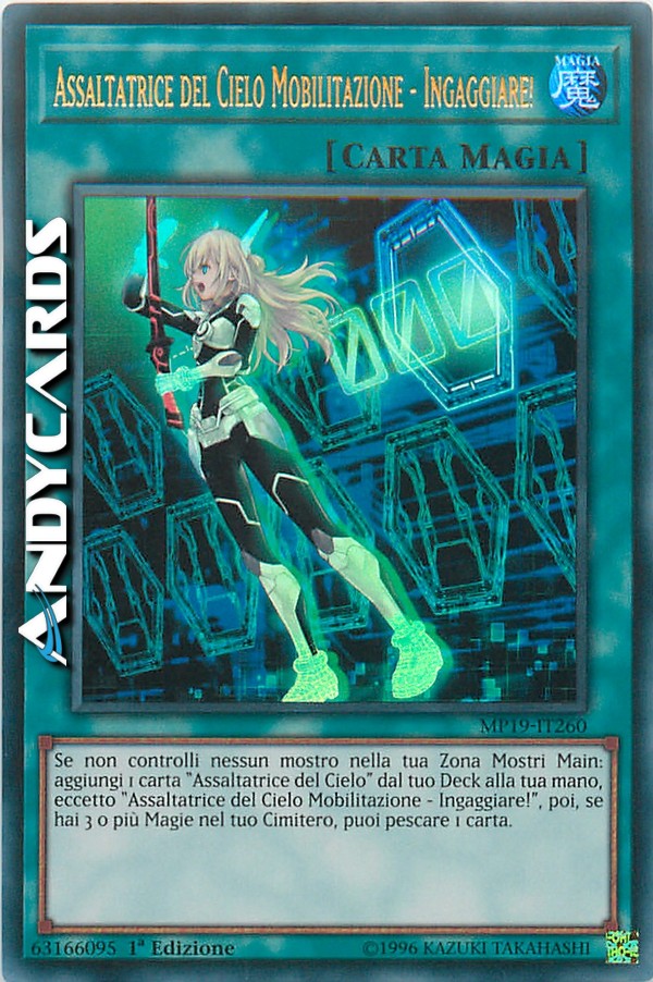 Se non controlli nessun mostro nella tua Zona Mostri Main: aggiungi 1 carta "Assaltatrice del Cielo" dal tuo Deck alla tua mano, eccetto "Assaltatrice del Cielo Mobilitazione - Ingaggiare!", poi, se hai 3 o più Magie nel tuo Cimitero, puoi pescare 1 carta.