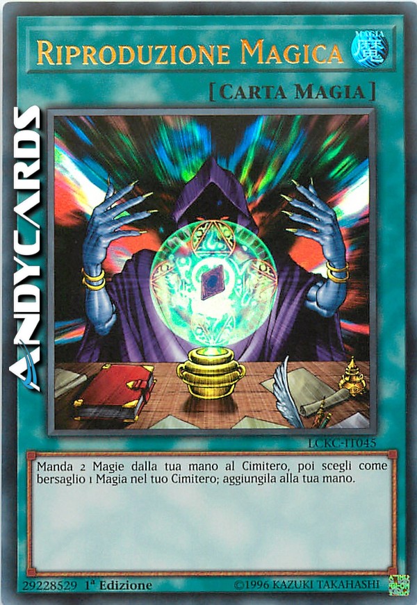 Manda 2 Magie dalla tua mano al Cimitero, poi scegli come bersaglio 1 Magia nel tuo Cimitero; aggiungila alla tua mano.