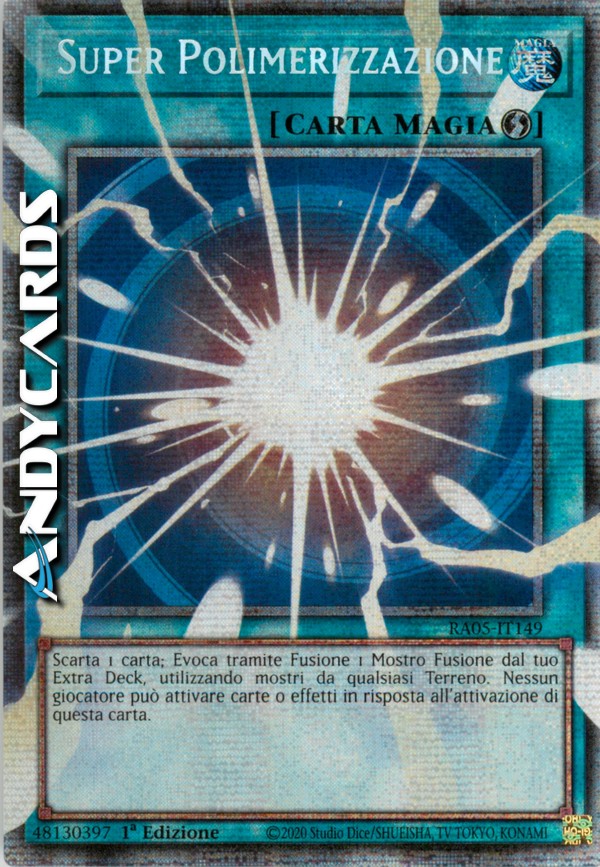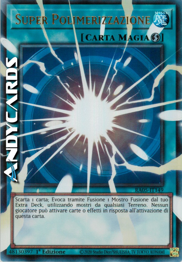 Scarta 1 carta; Evoca tramite Fusione 1 Mostro Fusione dal tuo Extra Deck, utilizzando mostri da qualsiasi Terreno come Materiale da Fusione. Nessun giocatore può attivare carte o effetti in risposta all'attivazione di questa carta.