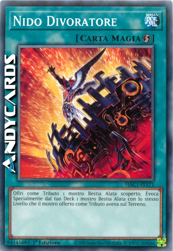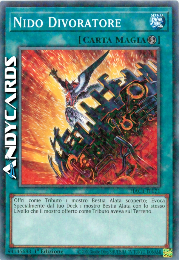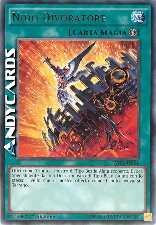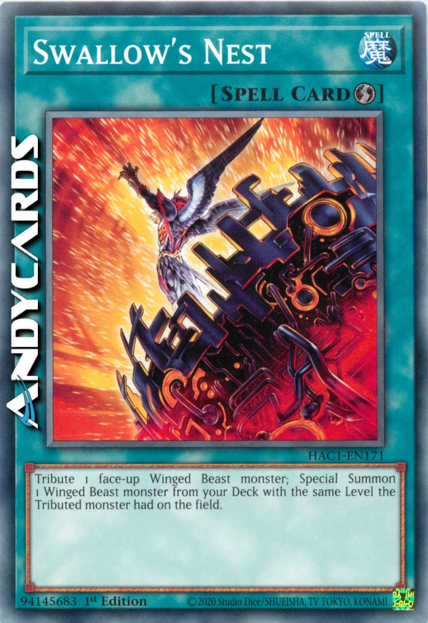 Offri come Tributo 1 mostro di Tipo Bestia Alata scoperto che controlli per Evocare Specialmente 1 mostro di Tipo Bestia Alata dal Deck con lo stesso Livello del mostro offerto come Tributo.