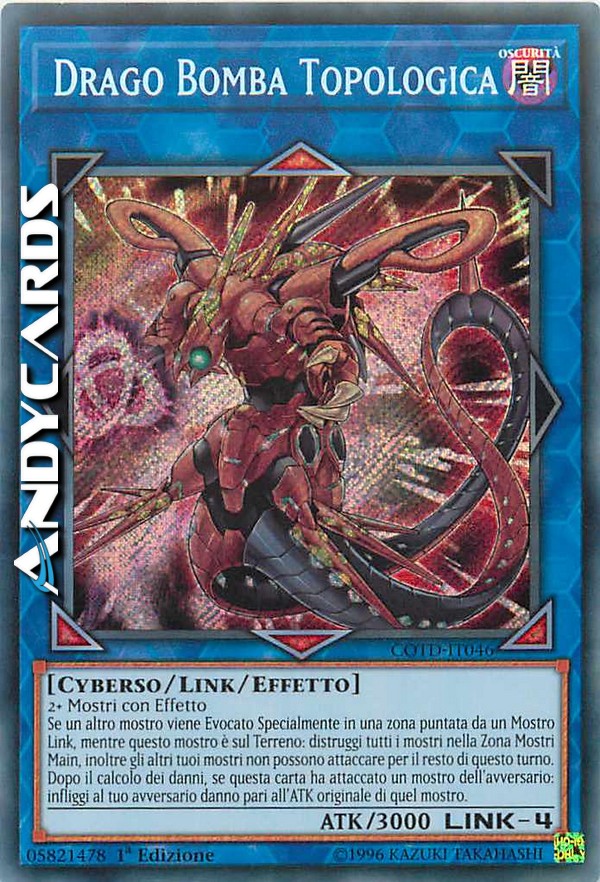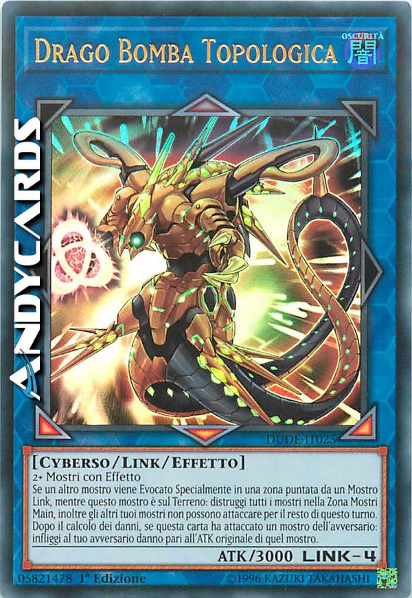 2+ Mostri con Effetto - Se un altro mostro viene Evocato Specialmente in una zona puntata da un Mostro Link, mentre questo mostro è sul Terreno: distruggi tutti i mostri nella Zona Mostri Main, inoltre gli altri tuoi mostri non possono attaccare per il resto di questo turno. Dopo il calcolo dei danni, se questa carta ha attaccato un mostro dell'avversario: infliggi al tuo avversario danno pari all'ATK originale di quel mostro.