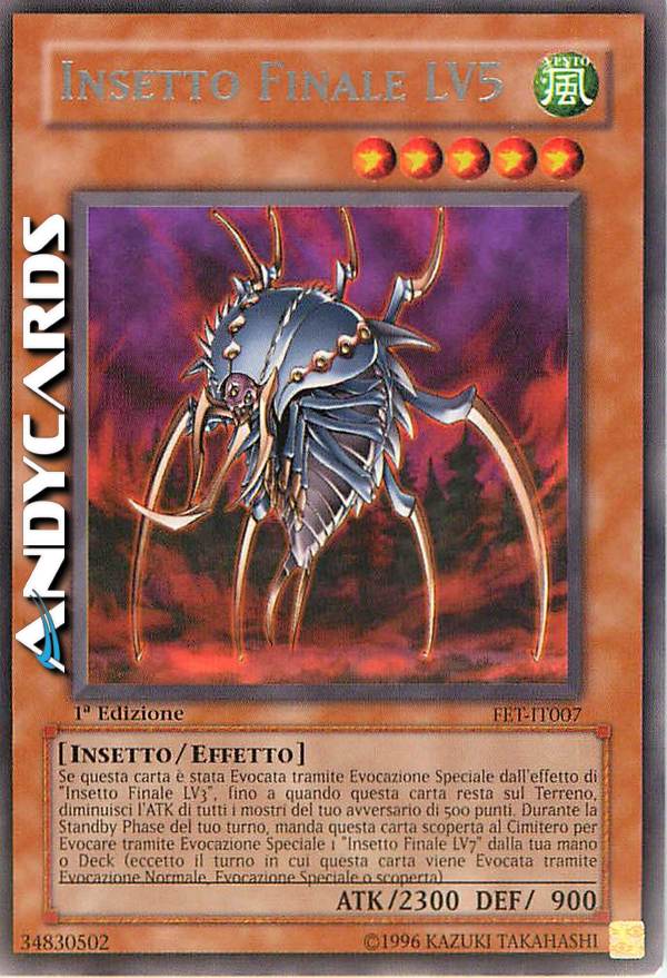 Se questa carta è stata Evocata tramite Evocazione Speciale dall'effetto di "Insetto Finale LV3", fino a quando questa carta resta sul Terreno, diminuisci l'ATK di tutti i mostri del tuo avversario di 500 punti. Durante la Standby Phase del tuo turno, manda questa carta scoperta al Cimitero per Evocare tramite Evocazione Speciale 1 "Insetto Finale LV7" dalla tua mano o Deck (eccetto il turno in cui questa carta viene Evocata tramite Evocazione Normale, Evocazione Speciale o scoperta).