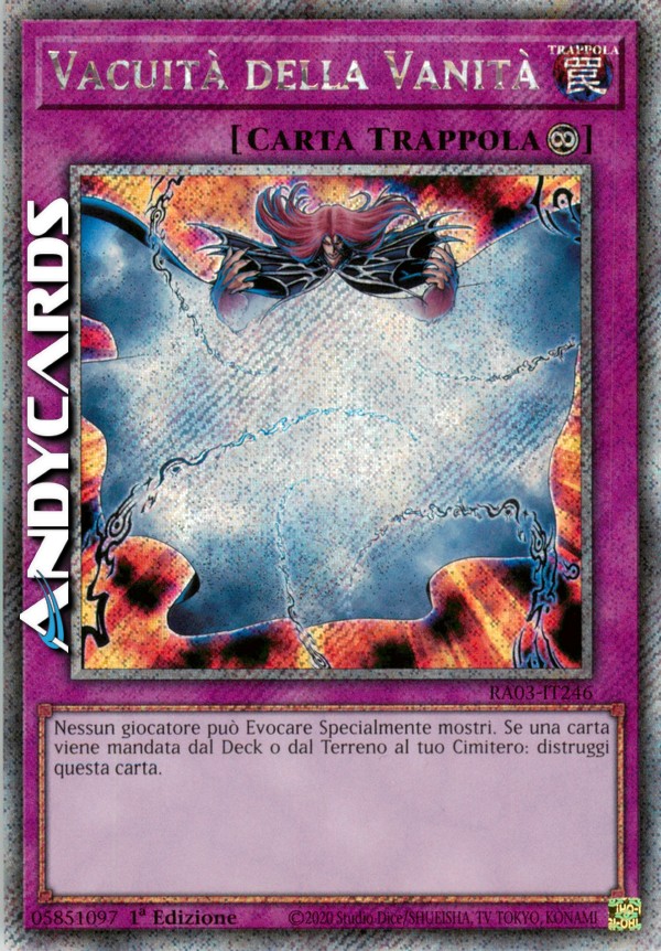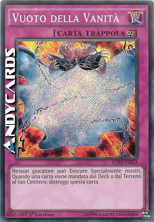 Nessun giocatore può Evocare Specialmente mostri. Se una carta viene mandata dal Deck o dal Terreno al tuo Cimitero: distruggi questa carta.