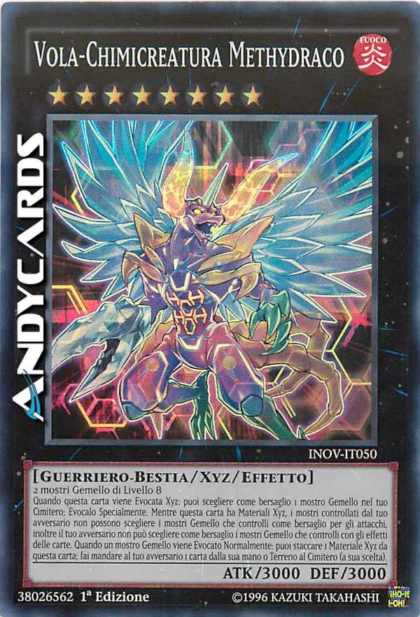 2 mostri Gemello di Livello 8 - Quando questa carta viene Evocata Xyz: puoi scegliere come bersaglio 1 mostro Gemello nel tuo Cimitero; Evocalo Specialmente. Mentre questa carta ha Materiali Xyz, i mostri controllati dal tuo avversario non possono scegliere i mostri Gemello che controlli come bersaglio per gli attacchi, inoltre il tuo avversario non può scegliere come bersaglio i mostri Gemello che controlli con gli effetti delle carte. Quando un mostro Gemello viene Evocato Normalmente: puoi staccare 1 Materiale Xyz da questa carta; fai mandare al tuo avversario 1 carta dalla sua mano o Terreno al Cimitero (a sua scelta).
