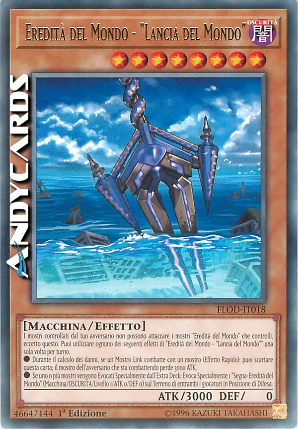 I mostri controllati dal tuo avversario non possono attaccare i mostri "Eredità del Mondo" che controlli, eccetto questo. Puoi utilizzare ognuno dei seguenti effetti di "Eredità del Mondo - "Lancia del Mondo"" una sola volta per turno.