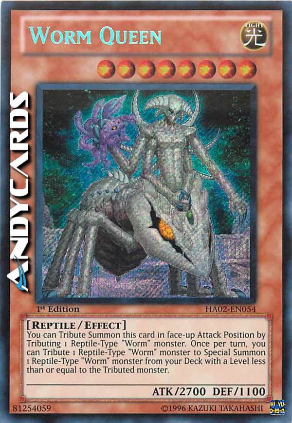 Rare You can Tribute Summon this card in face-up Attack Position by Tributing 1 Reptile-Type "Worm" monster. Once per turn, you can Tribute 1 Reptile-Type "Worm" monster to Special Summon 1 Reptile-Type "Worm" monster from your Deck with a Level less than or equal to the Tributed monster.