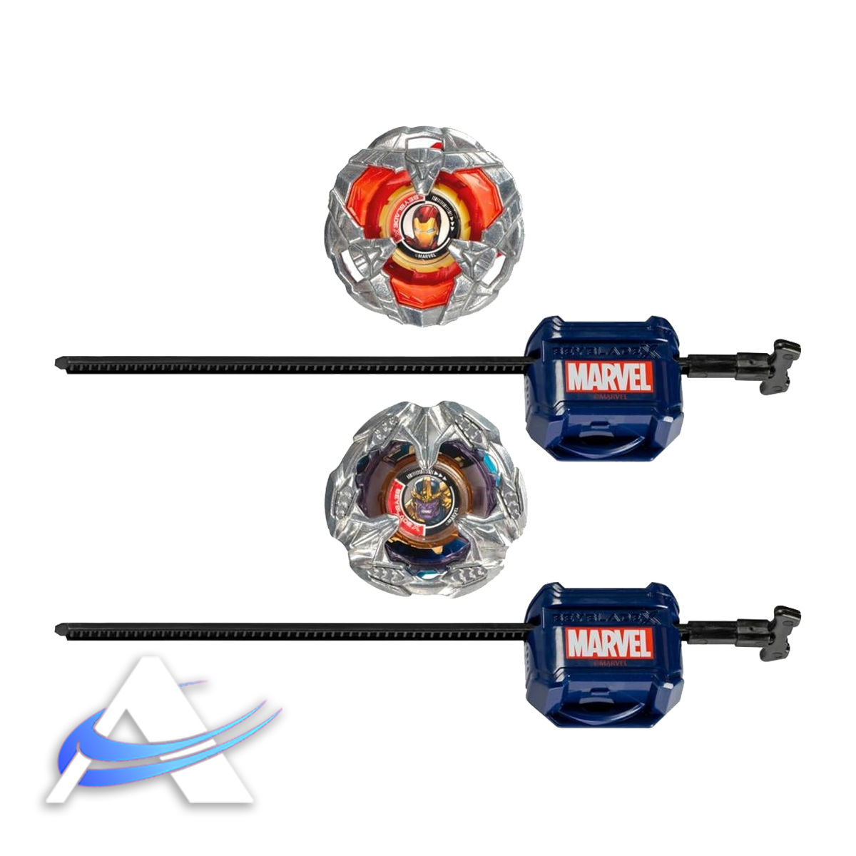 Include: 2 trottole Beyblade X e 2 lanciatori Marvel