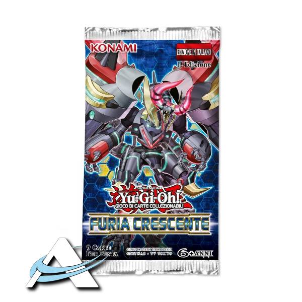 I venti del cambiamento soffiano in Yu-Gi-Oh! GIOCO DI CARTE COLLEZIONABILI Furia Crescente, il primo set da 100 carte della stagione dei Duelli 2019 - 2020! Una fresca stagione dei Duelli significa nuove strategie fresche, che soffiano nuova vita sulle vecchie strategie e su carte molto forti che tutti possono usare. Ecco un'anticipazione di quello che potrete trovare al lancio di Yu-Gi-Oh! GIOCO DI CARTE COLLEZIONABILI Furia Crescente il 25 luglio. Diventa un maestro delle arti Tenyi! I praticanti delle arti marziali Tenyi scartano i loro averi materiali e le loro abilità umane per incanalare il selvaggio potere della natura entrando in comunione con il pianeta stesso. Le Marincess regnano sul mare! La strategia Cyberso potenziata grazie agli Ignis di Blue Maiden di Yu-Gi-Oh! VRAINS fa la sua entrata in campo con Yu-Gi-Oh! GIOCO DI CARTE COLLEZIONABILI Furia Crescente. Solo il pescare il mostro base di questo tema, Marincipessa Cavalluccio Marino è abbastanza per permetterti di Evocare i mostri Link 3 Marincipessa Roccia Marmorea e aggiungere Marincipessa Cavalluccio Marino alla tua mano! Le Stregartigiane tratte da Yu-Gi-Oh! GIOCO DI CARTE COLLEZIONABILI I Cercatori dell'Infinito completano il loro capolavoro! Prendi in consegna Stregartigiana Golem Aruru e potrai potenziare qualsiasi Deck basato sugli Incantatori con un mostro che si nasconde nella tua mano fino a quando il tuo avversario bersaglia il tuo Incantatore con un attacco, carta o effetto e quindi gliene fa pentire! Persempre, Signora della Fortuna è un Mostro Synchro che puoi inserire in ogni Deck a base Incantatore! Cresce e si rafforza durante ognuna delle tue Standby Phase e ogni volta che lo fa uno dei mostri del tuo avversario smette di esistere! Non può essere sconfitta normalmente e uscirà dal tuo Cimitero ogni volta che l'avversario terminerà il suo turno. Una nuova arma unica per il tuo Extra Deck! Apollousa, Arco della Dea è un mostro Link 4 che ha una freccia per ogni mostro usato per Evocarlo Tramite Link. Ognuno vale 800 ATK, fino a un massimo di 3200 ATK e potrai far perdere ad Apollousa 800 ATK per negare l'attivazione di qualsiasi effetto dei mostri dell'avversario. Contenuto del set: - L'espansione Yu-Gi-Oh! GIOCO DI CARTE COLLEZIONABILI Furia Crescente contiene 100 carte in totale: 48 Carte Comuni, 20 Carte Rare, 14 Carte Super Rare, 10 Carte Ultra Rare, 8 Carte Rare Segrete