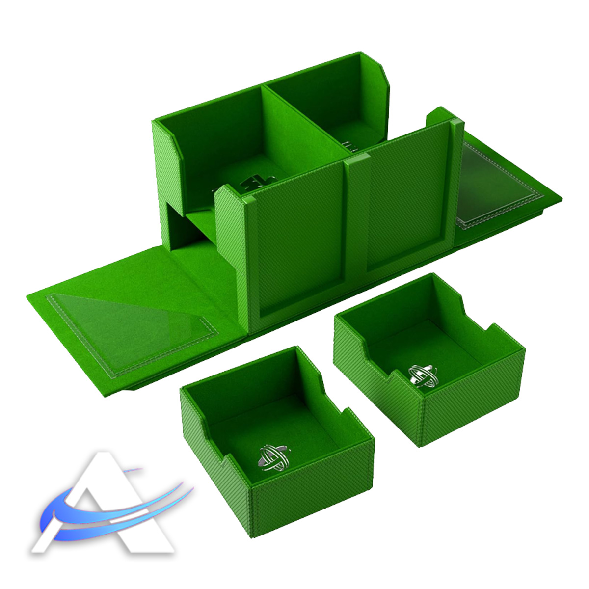 Ogni mazzo ha la sua custodia Slide Card Case per il leader, la tasca per la base e lo scomparto integrato per i gettoni. Proprio come il Deck Pod standard, il Double Deck Pod è disponibile in 6 varianti diverse in base ai diversi aspetti di composizione del mazzo.