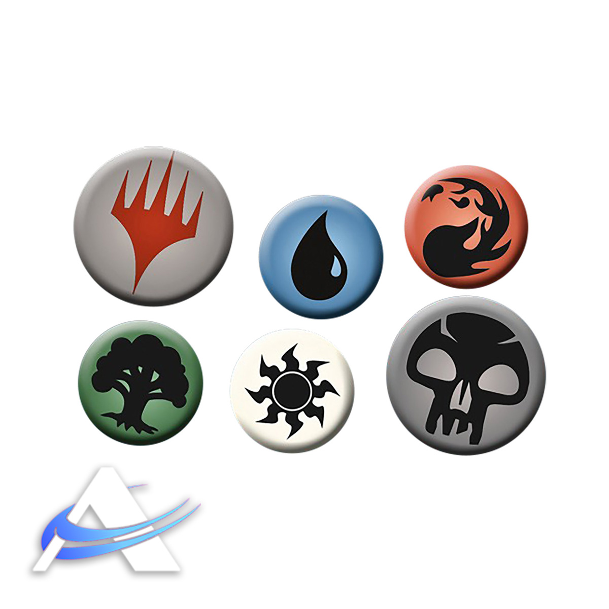 Set di spille dedicate ai 5 colori del mana (Bianco, Blu, Nero, Rosso, Verde) più il logo ufficiale. Ogni spilla è realizzata con attenzione ai dettagli, ideali sia per uso quotidiano che per collezione. Perfette per fan, collezionisti e giocatori, rappresentano i celebri simboli del mana e il logo iconico del gioco.