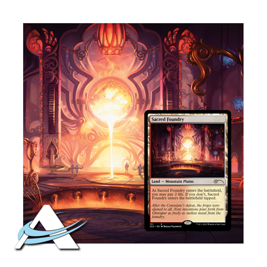Il Multiverso di Magic ospita una grande varietà di strani e magnifici piani. In questa serie di drop Culture Shock, abbiamo selezionato dieci piani da visitare e celebrare con nuove illustrazioni “Shock Land”. Questo drop, in rosso, verde e bianco, visita Kaladesh, Tarkir e Theros, amorevolmente illustrati da Daarken, Tyler Jacobson e Magali Villeneuve.